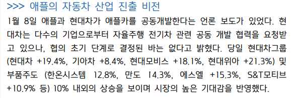1) 김민선, "애플, 현대차 애플카 협업설의 시사점", 키움증권, 2021-01-11