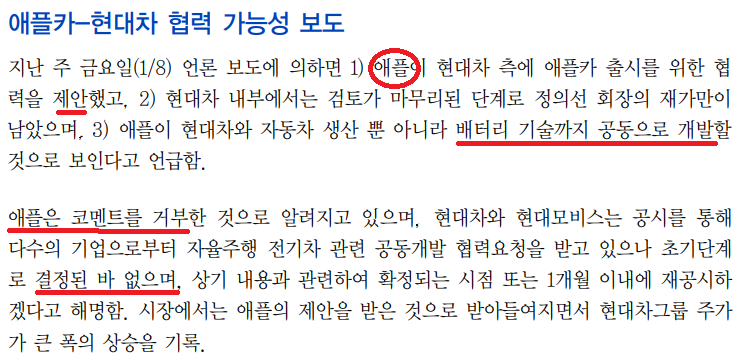 2. 애플카- 현대 합작 가능성과 방향 - 제일 중요!!