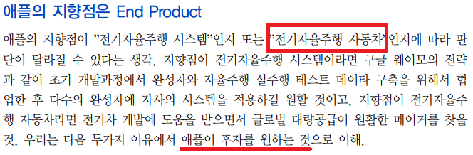 (4) 완성차 기업(End-product)으로서 애플과 협업한다면 최상의 시나리오