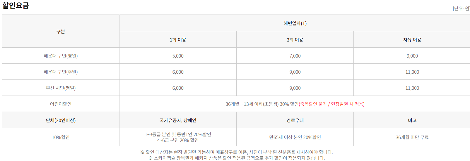 부산 시민분들이나 노약자, 국가유공자, 장애인, 단체는 할인이 된다니까 참고하시면 됩니다.