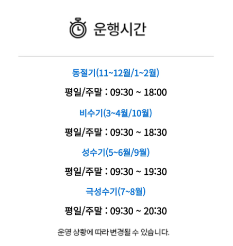 계절에 따라서 막차 시간이 다르니 주의하세요! 왕복으로 타실 분들은 왕복시간까지 계산해서 출발 열차 타야합니다.