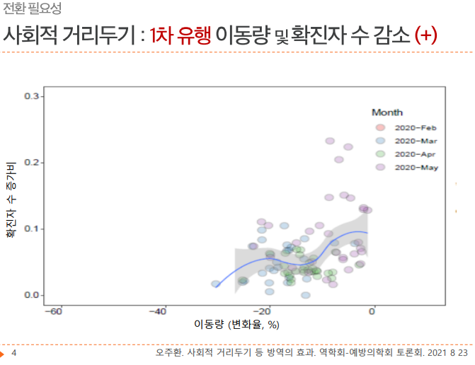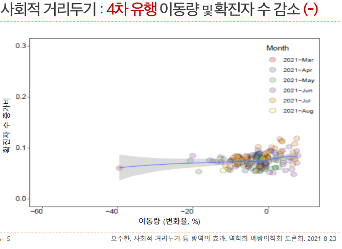 첫째, 한국식 사회적 거리두기 강도로는 델타 변이로 다 대체된 상황에선 효과가 0에 가깝다.