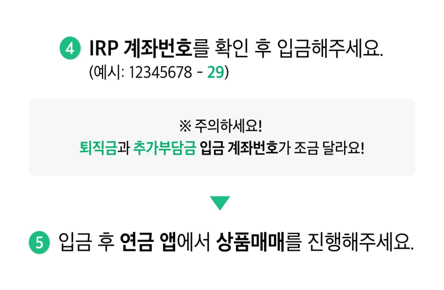 계좌번호 확인 후 입금하면 됩니다. IRP 계좌번호는 29로 끝난다는 점!