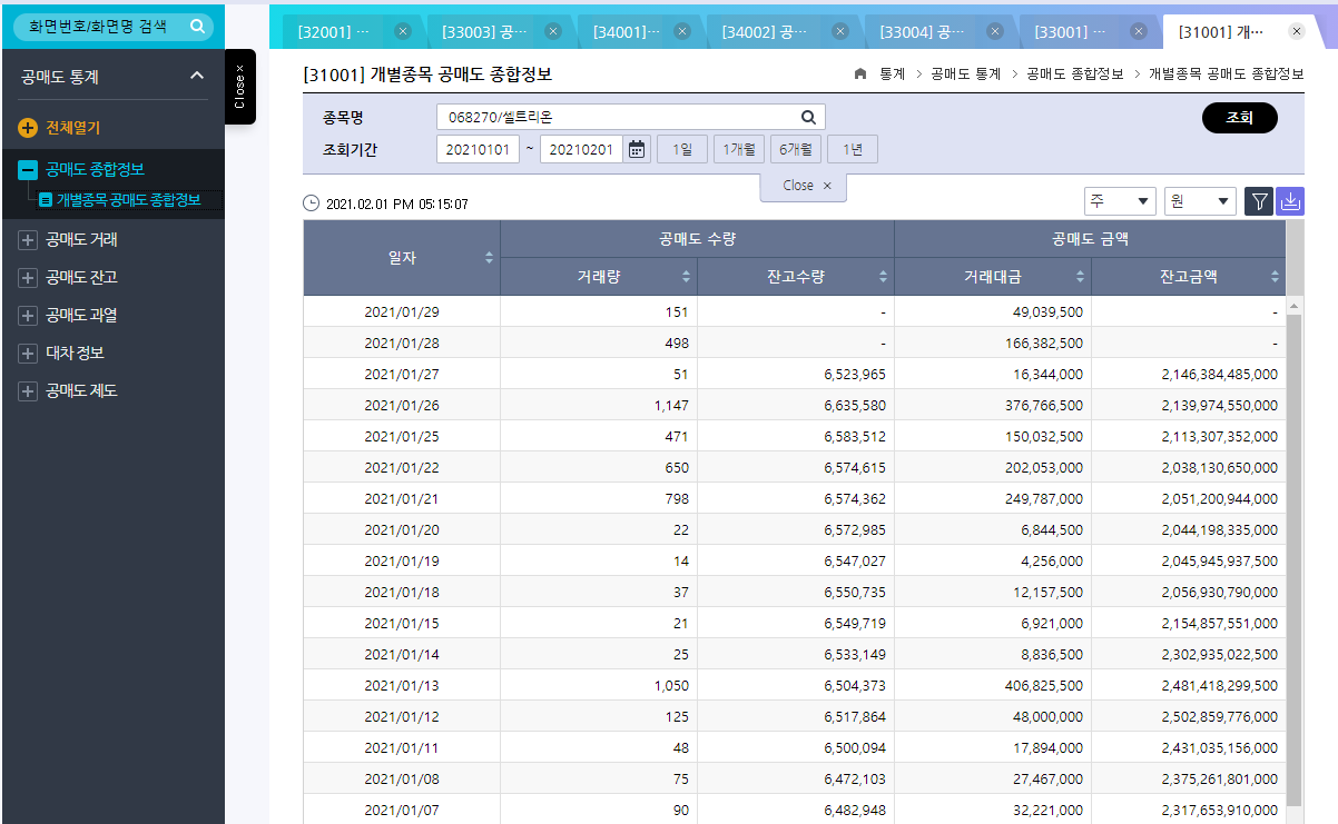3. 셀트리온 공매도 현황