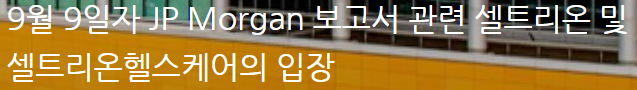 4) 토네이도, "9월 9일자 JP Morgan 보고서 관련 셀트리온 및 셀트리온헬스케어의 입장", 네이버 블로그, 9월 9일자 JP Morgan 보고서 관련 셀트리온 및 셀트리온헬스케어의 입장 : 네이버 블로그 (naver.com)