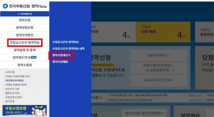 그럼 모집공고단지 청약연습 > 청약가점계산기 가 있습니다.